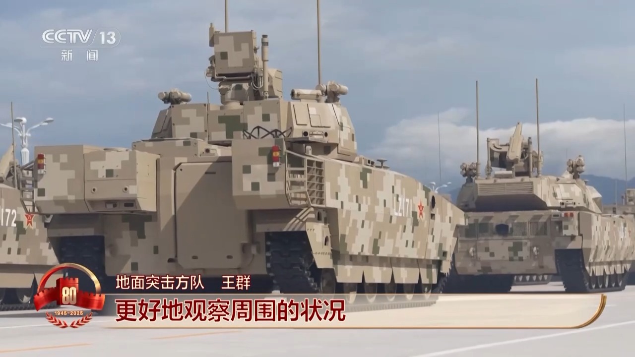 *地面突擊方隊 王羣:*100支援戰車還增配了無人操作手,可以操作無人偵察車和無人機,能夠大幅提升偵察能力,精準打擊火力目標。
