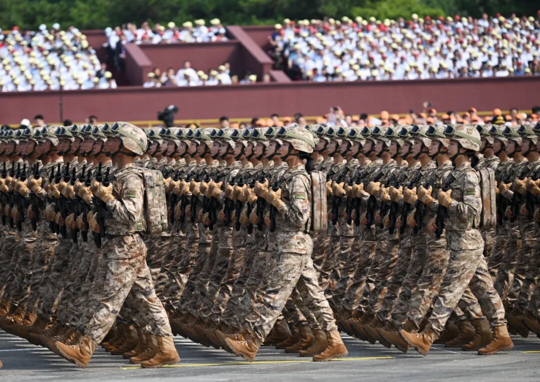 9月3日,紀念中國人民抗日戰爭暨世界反法西斯戰爭勝利80週年大會在北京隆重舉行。這是陸軍方隊接受檢閲。新華社記者 魯金博 攝