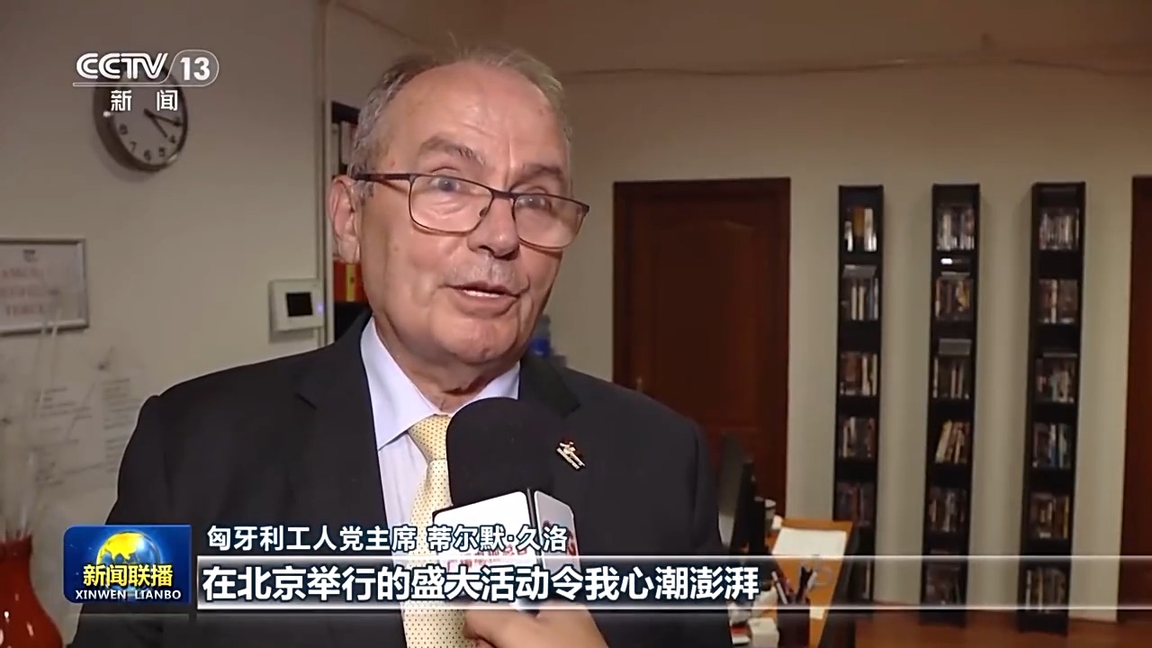 *匈牙利工人黨主席 蒂爾默·久洛:*在北京舉行的盛大活動令我心潮澎湃,我的心飛到了天安門廣場。習近平主席在講話中描述了中國人民的英雄氣概,也展現了中國人民的寬廣胸襟。世界看到了中國在軍事、經濟等領域的巨大發展成就,也看到了中國致力於與世界各國合作共贏的意願。正如習主席在上合組織天津峯會上所講,我們需要堅持互利共贏,遵守國際法治,倡導以人為本,習主席一系列講話在國際外交和國際關係史上有里程碑意義。