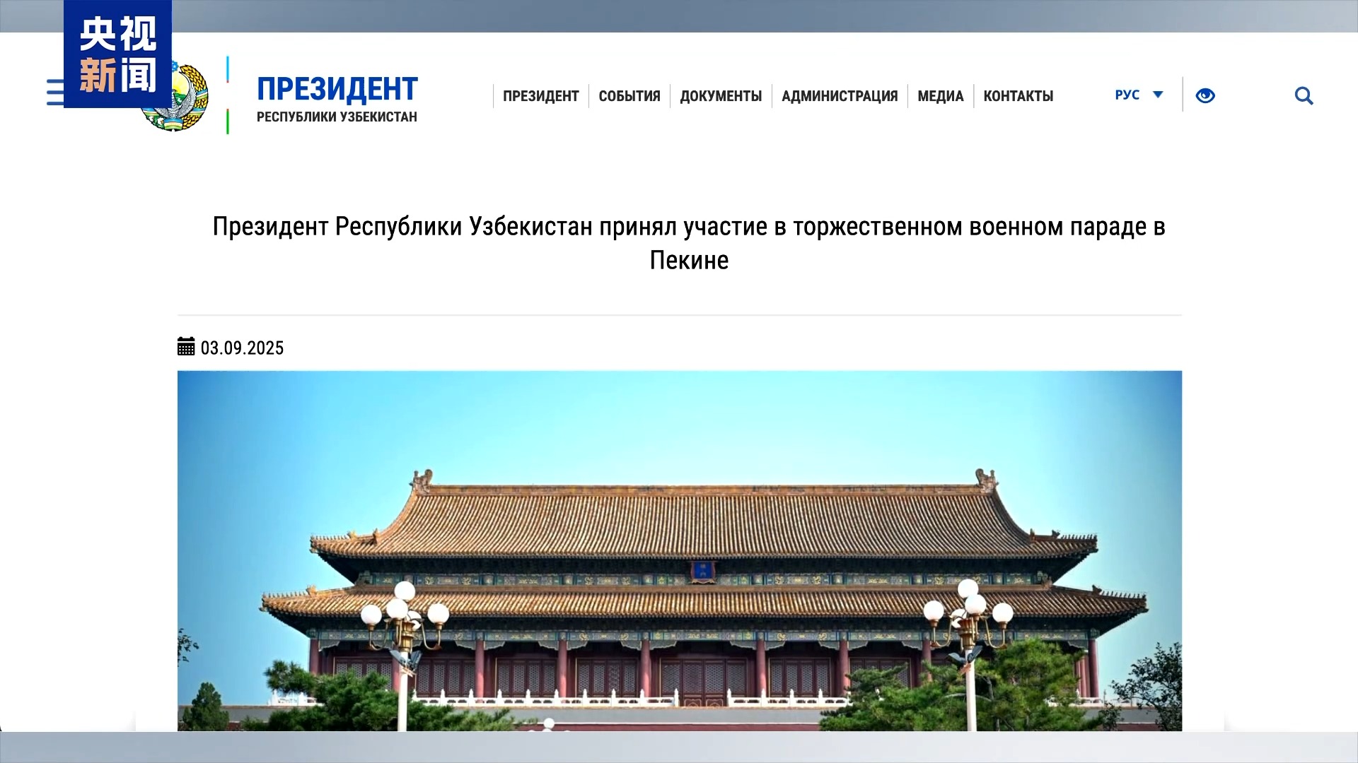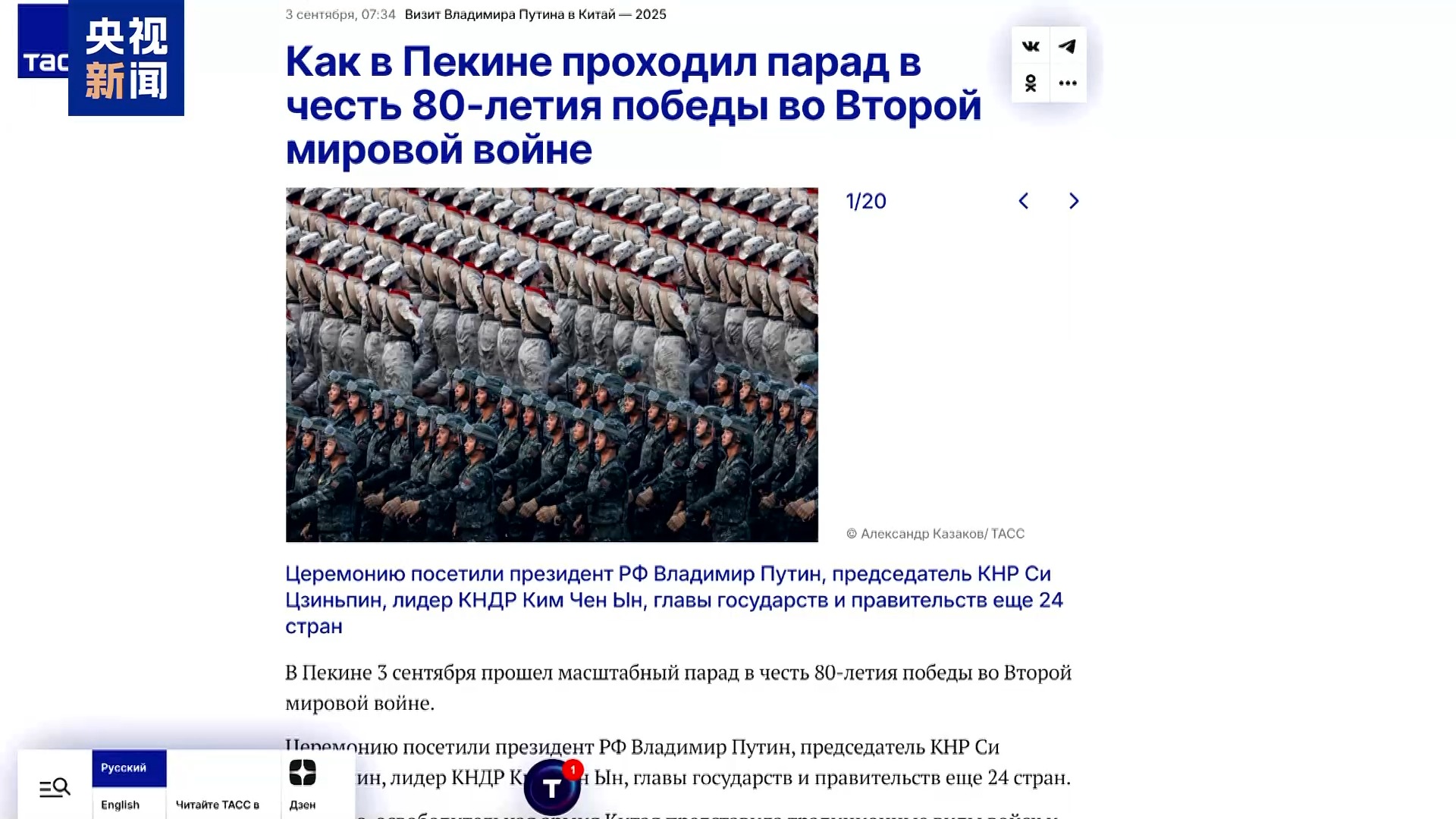 俄羅斯1頻道對閲兵儀式全程、出席嘉賓情況等進行了詳細介紹和滾動報道。