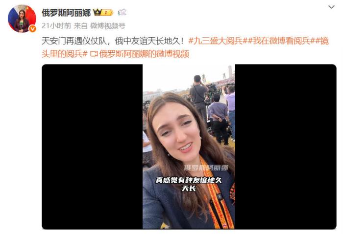 十年後,阿麗娜終於圓夢,來到了北京。九三閲兵當天,阿麗娜在社交媒體上接連發布多條帖文,並用中文表達了自己的開心,“中國軍人太帥了”“俄中友誼天長地久”!