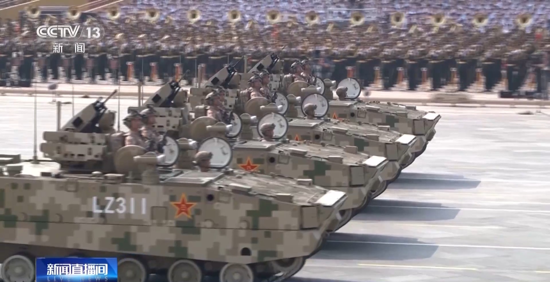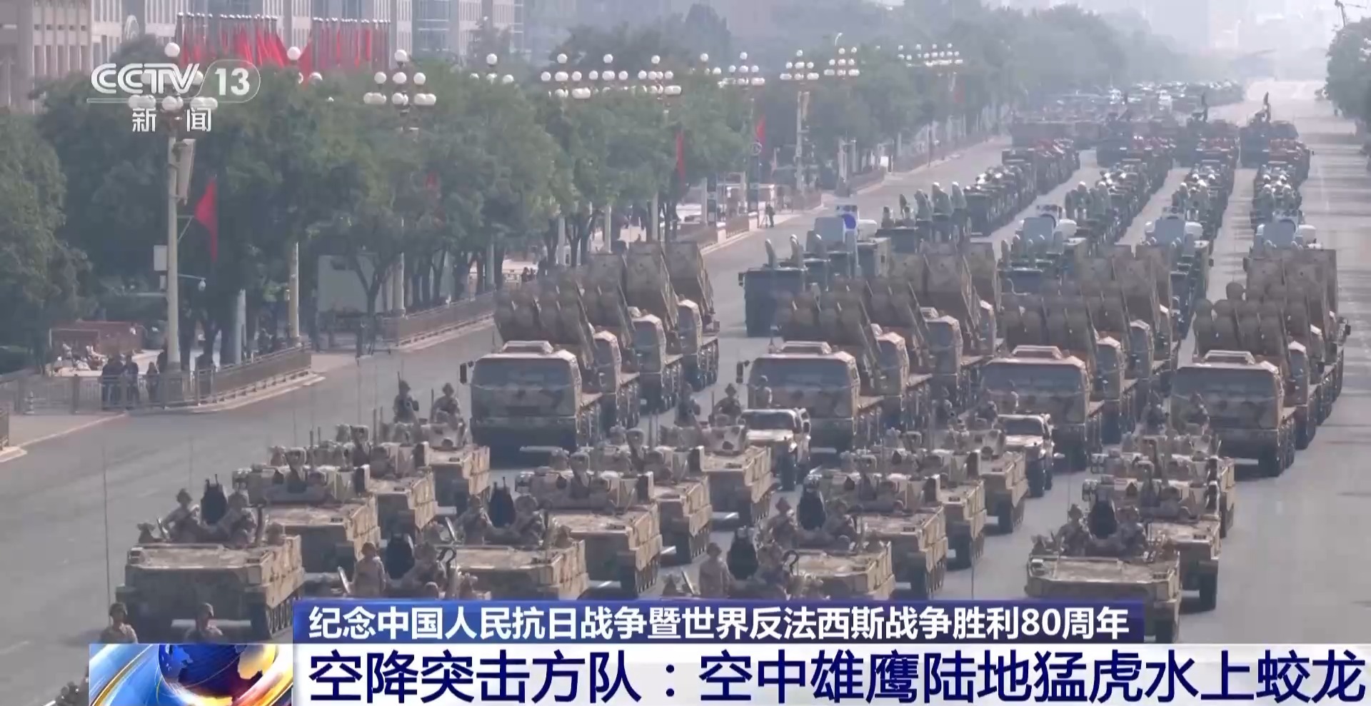 9月3日上午,天安門廣場舉行了盛大的閲兵。 閲兵式上,全副武裝的空降突擊方隊官兵搭乘新型履帶系列空降戰車,以排山倒海的陣勢威武亮相閲兵場,接受黨和人民的檢閲,向世界展示了空軍空降裝備體系建設取得的新成就。