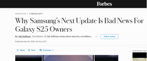 【環球網科技綜合報道】據外媒福布斯報道稱,據新報告稱,9月對於Galaxy S25用户來説可能是“大失所望”。事實上,儘管這毋庸置疑,但就在谷歌發佈新款Pixel 10成為頭條新聞幾天後,Android整體市場也出現了一些壞消息。