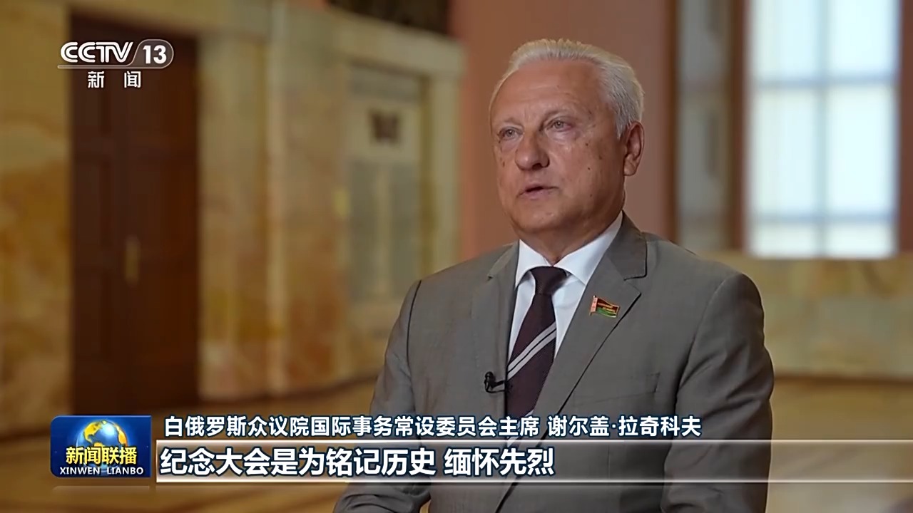 *白俄羅斯眾議院國際事務常設委員會主席 謝爾蓋·拉奇科夫:*紀念大會是為銘記歷史、緬懷先烈,也將為當前形勢下維護國際和平作出重要貢獻。習近平主席不久前提出全球治理倡議,強調奉行主權平等、遵守國際法治、踐行多邊主義、倡導以人為本,將推動國際社會朝着構建人類命運共同體的方向邁進。