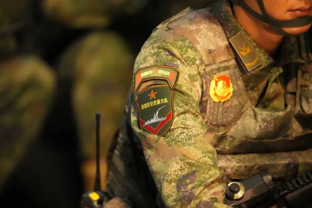 我的工作點位在長安路以北的裝備集結區,與我搭檔的是新華社記者林煜。在第三次演練的晚上,我倆發現路北側人行道上集結了一支受閲隊伍,他們年輕朝氣富有活力,身形挺拔,陽剛帥氣,臂章上寫着艦載防空武器方隊。