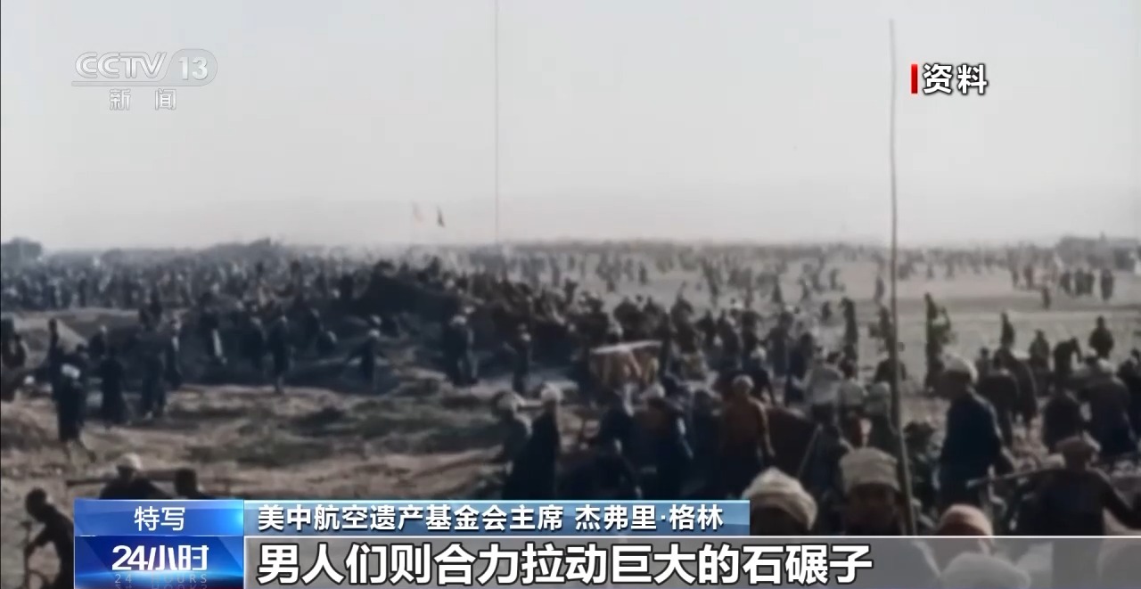 *美中航空遺產基金會主席 傑弗裏·格林:*婦女們背上揹着孩子,坐在地上把大石塊敲成小石子;孩子們再把小石子撿到指定地點;男人們則合力拉動巨大的石碾子,有時候要100個人才能拉動一台10噸重的石碾子,就為了把跑道壓平整。無論是寒冬還是酷暑,婦女們敲碎的每一塊石頭,都是在為機場出力,為飛機起降創造條件,讓美國飛行員能順利升空抗擊日軍。這背後是一種信念:他們所做的一切都在為勝利搭建基礎。