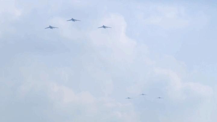 受閲的轟-6N戰略轟炸機以及轟-6K、轟-6J編為三個楔隊,具備遠程奔襲、大區域巡航、防區外打擊能力,是我軍空基遠程打擊力量。