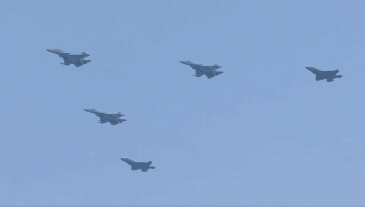 殲-16D、殲-20、殲-35A、殲-20S、殲-20A編成兩個楔隊震撼亮相。多款新型隱身戰鬥機列裝,我國殲擊機家族加速換羽更新,祖國領空絕不容侵犯。