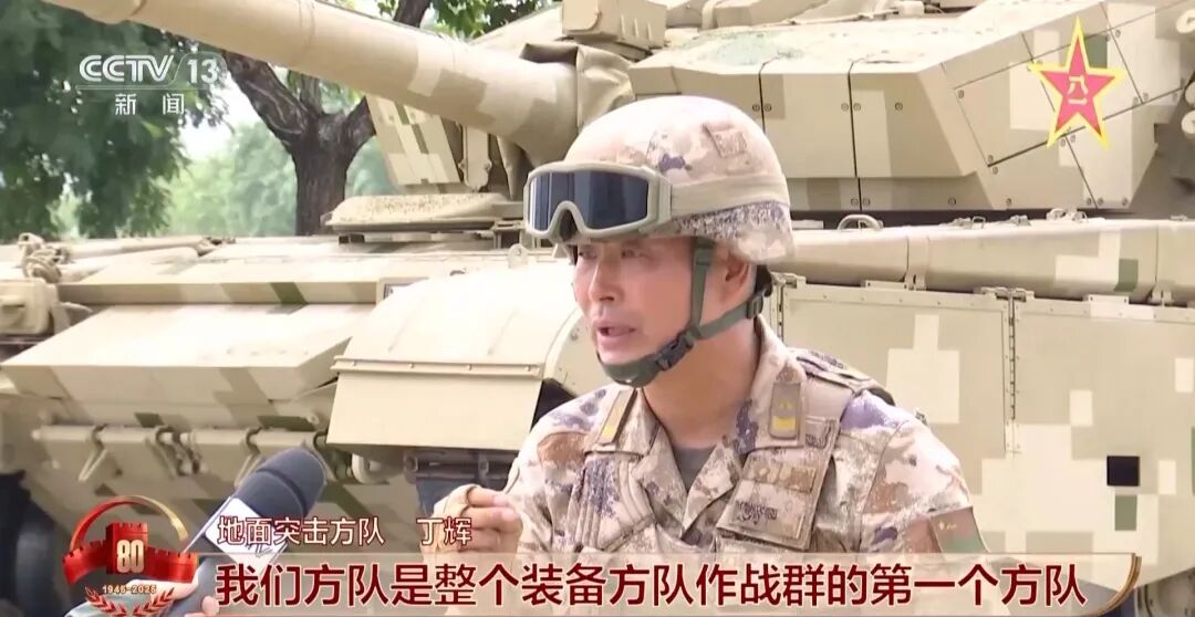九三閲兵分列式中,地面突擊方隊以威武的三角戰鬥隊形領銜裝備方陣。駕馭“第一車”的,是第6次踏上閲兵場的一級軍士長丁輝。