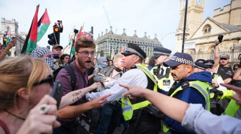 現場畫面!倫敦爆發支持巴勒斯坦抗議活動超400人被捕,有示威者與警方發生衝突