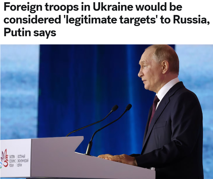 俄羅斯總統普京表示,如果俄烏之間達成了長期和平的決定,那麼西方軍隊在烏克蘭領土上沒有存在的意義。目前在烏克蘭的外國軍隊是俄方合法的打擊目標。