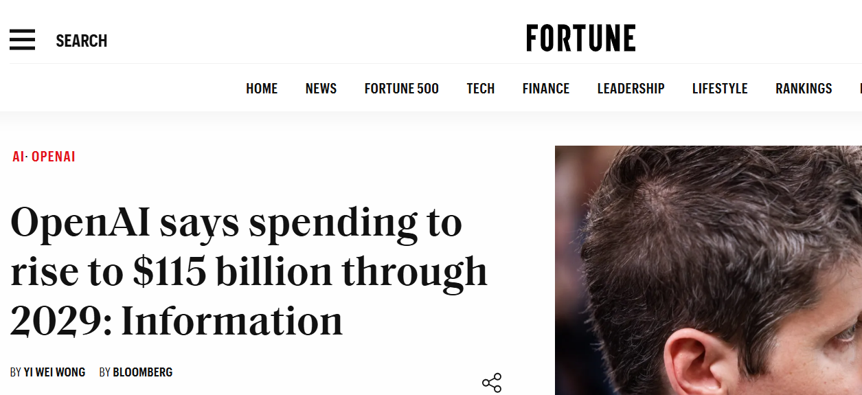 【環球網科技綜合報道】9月7日消息,據《財富》雜誌報道,OpenAI 向投資者透露,其支出規劃出現大幅調整,預計到2029年,公司支出可能飆升至1150億美元,這一數字比此前預期足足多出約800億美元。