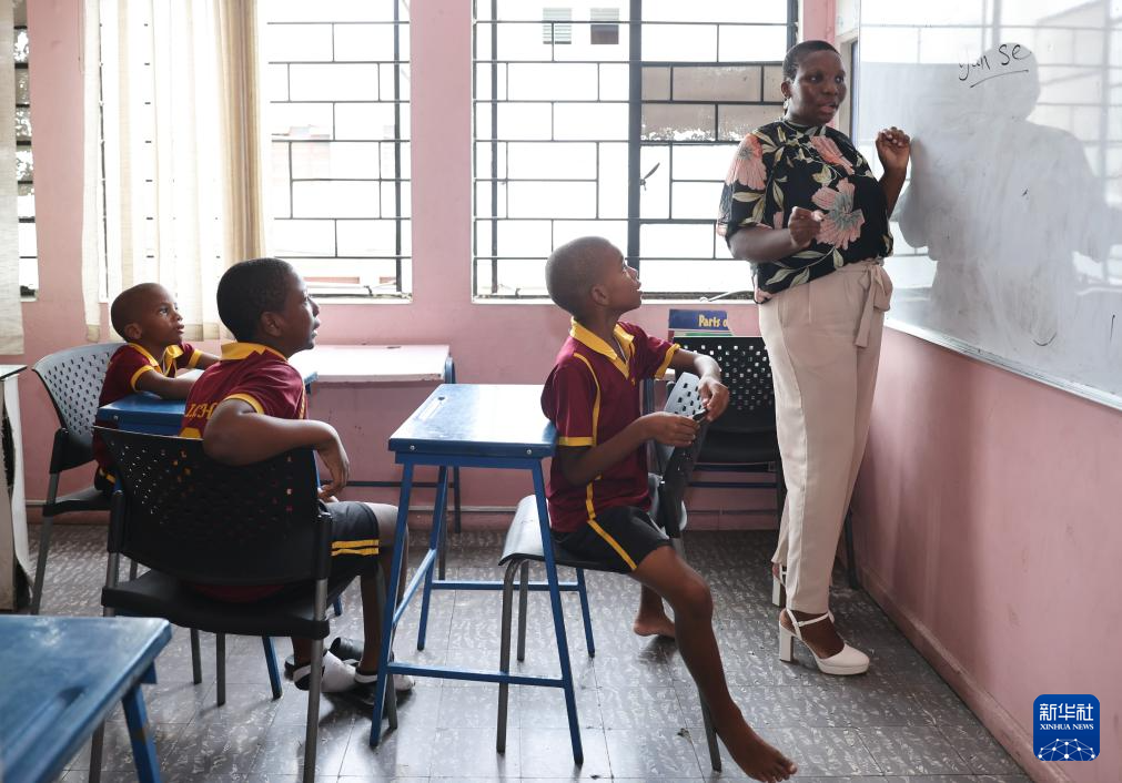 9月4日,在牙買加首都金斯敦艾特特殊教育小學,校長娜塔莎·拉塞爾在授課。新華社記者 李夢馨 攝