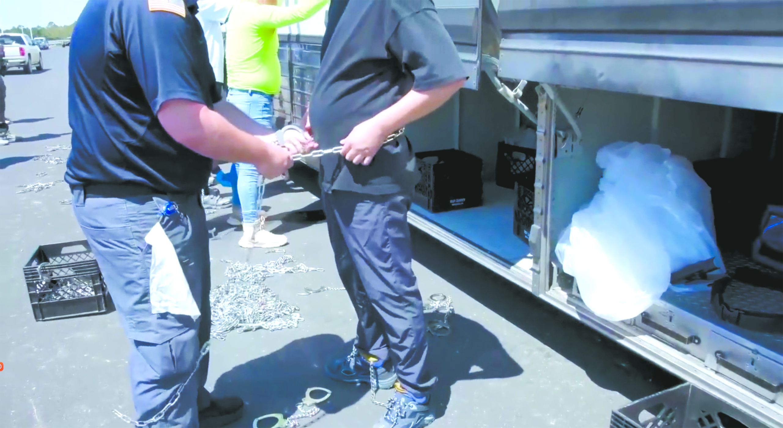 據韓國《朝鮮日報》7日報道,參與4日聯合行動的部門包括美國移民與海關執法局、美國國土安全調查局、美國緝毒署以及佐治亞州巡警,他們出動了直升機、軍用車輛等。據路透社報道,現場畫面顯示,一些工人雙手、腰部和腳踝被鐐銬束縛,並被押解上大巴車。