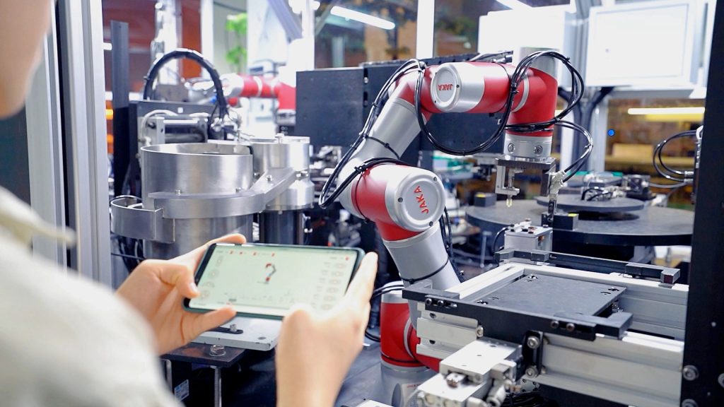 如今,在各種智慧工場中已經實現取料、搬運、放料、巡檢、激光打標等工作由機器人完成。作為工業機器人的一個分支,協作機器人可以與人在同一個空間共同完成工作,既安全又靈活易部署,被廣泛採用。節卡協作機器人就是通過“模塊化設計”和“統一技術平台”,讓同一機器人本體搭配不同末端、底部等工具來切換不同功能,滿足不同場景需求。