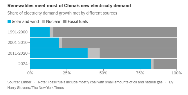 “中國在太陽能、風能和電池領域的投資有望結束全球煤炭、石油和天然氣使用量增長的時代。”