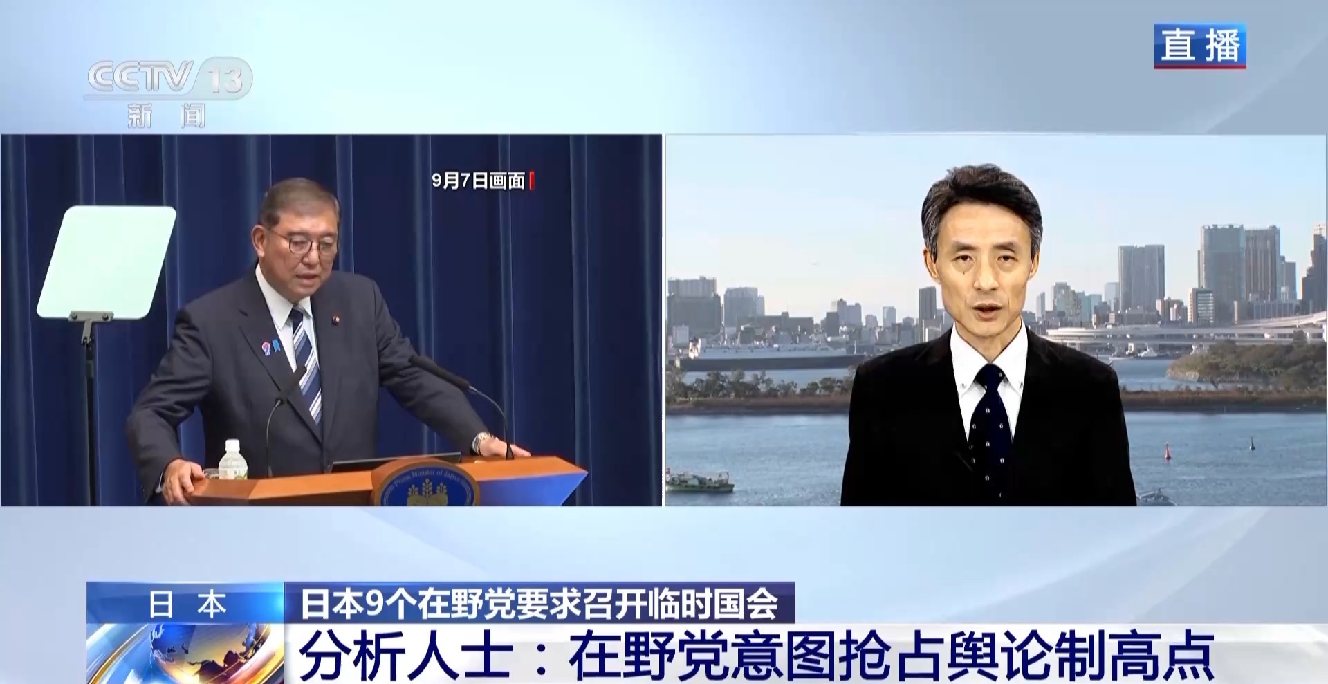 *總枱記者 李衞兵:*分析人士認為,自民黨總裁選舉將在10月4日舉行,其後要先決定黨內的人事,還需要與在野黨進行協商,再到首相指名選舉,選出新首相。如此一來,有可能在10月中旬之前政權都無法確定,政治空白將會延續很長一段時間。在野黨此時要求召開臨時國會,存在趁石破茂辭職引發自民黨及政權內部混亂之機,力圖在今後的執政博弈中搶佔輿論制高點的用意。