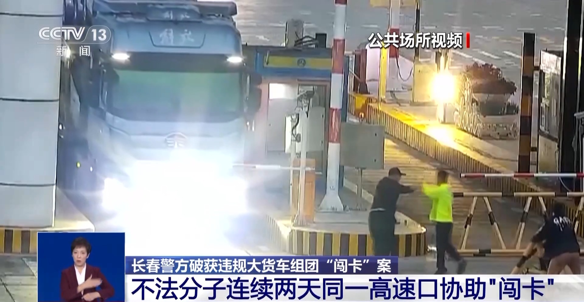 吉林長春警方近期披露了一起違規大貨車組團“闖卡”案。今年7月,長深高速長春西收費站發生這樣一幕,兩名蒙面男子強行推開路障、暴力拽開收費員,指揮着多輛遮擋號牌的大貨車撞杆闖卡後揚長而去。