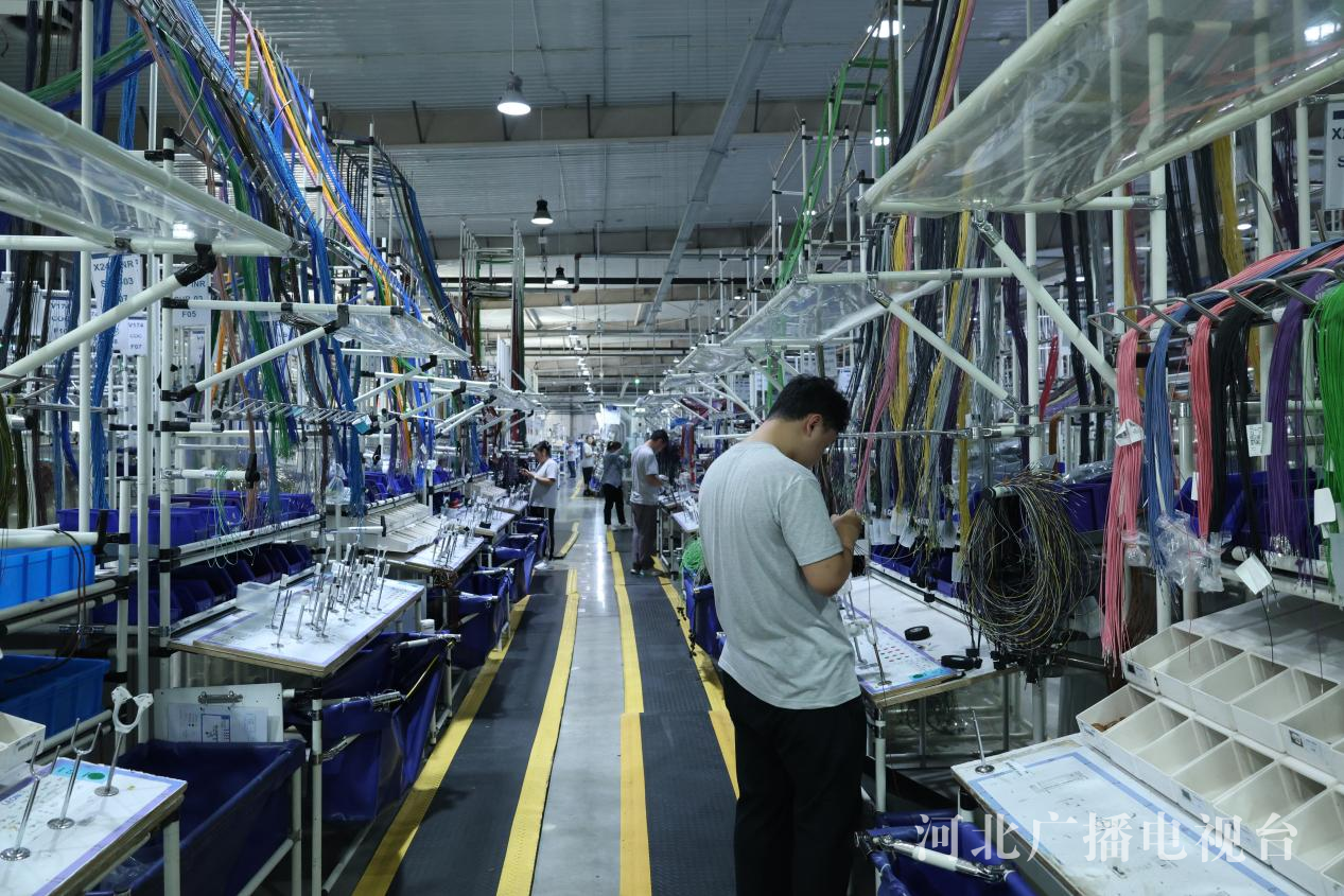 離開“數字雲端”,記者團走進廊坊萊尼線束系統有限公司的生產車間,瞬間被眼前的場景震撼:數百台自動化設備高速運轉,細如髮絲的銅絲在機械臂間精準纏繞,最終彙集成車用線束——這些看似普通的“線疙瘩”,卻是新能源汽車的“神經網絡”。