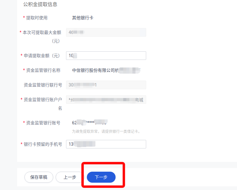 6.“申請提取金額”不得大於“本次可提取最大金額”。