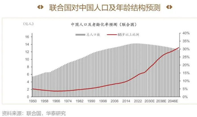 華泰證券也認為,聯合國預測模型顯示,2050年中國65歲以上人口占比超30%,總量超3.8億,這不僅意味着老年人口的絕對數量增加,還將帶來老年羣體生活質量的顯著改善,例如慢性病管理能力的增強和活躍生活方式的推廣,從而進一步放大銀髮經濟在GDP中的佔比。