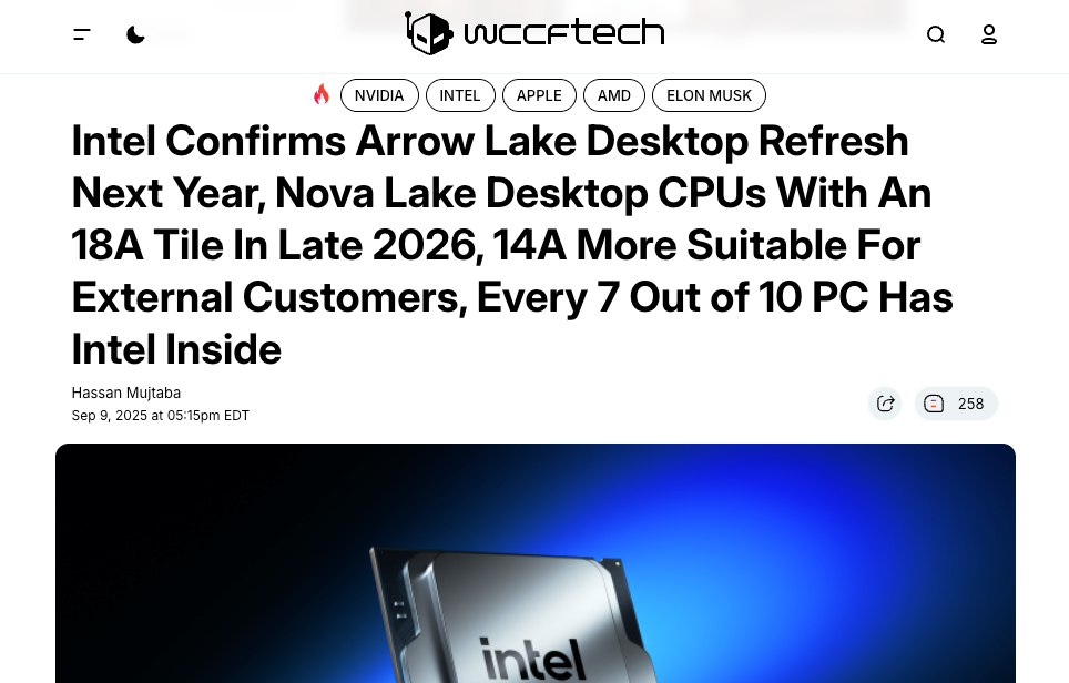 英特爾高管再次披露:Arrow Lake明年初登場,Nova Lake鎖定明年年底