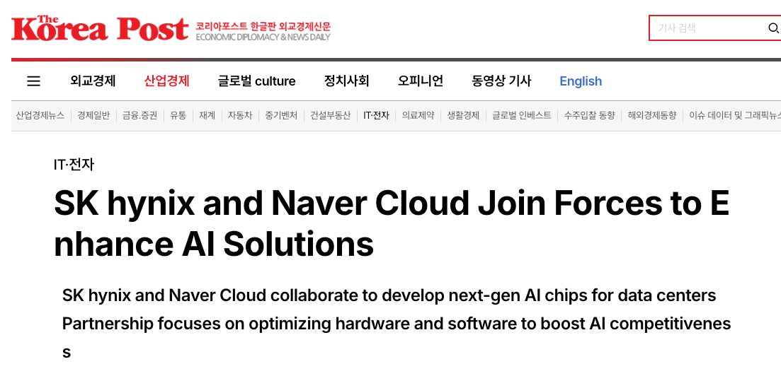 SK海力士宣佈與Naver Cloud聯手開發下一代AI芯片