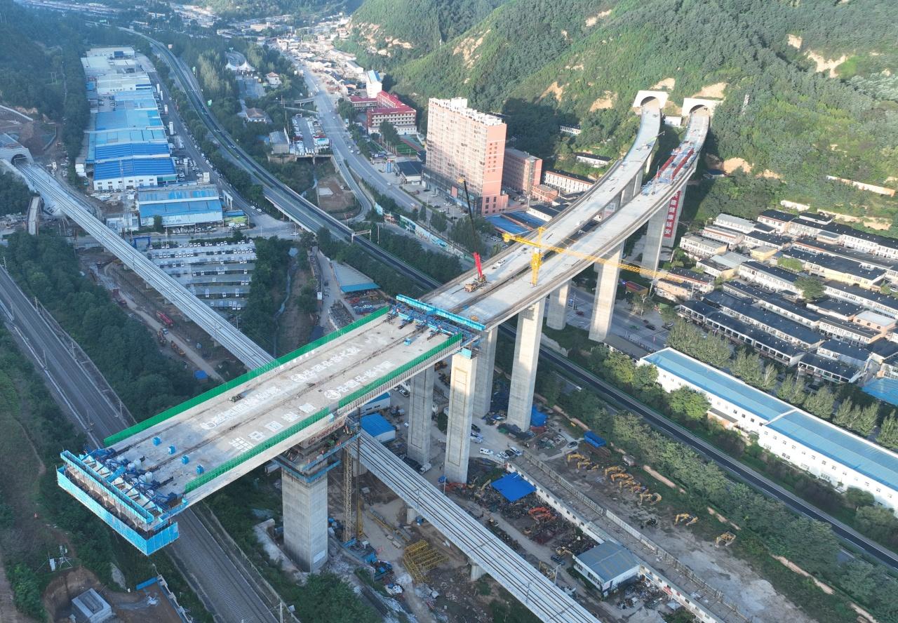 中國葛洲壩集團第三工程有限公司黨委委員、副總經理趙芳甫表示,南泥灣機場大橋全長638米,橫跨包西鐵路、西延高鐵等兩條鐵路幹線及三條公路,施工需克服複雜地質與極高安全要求。