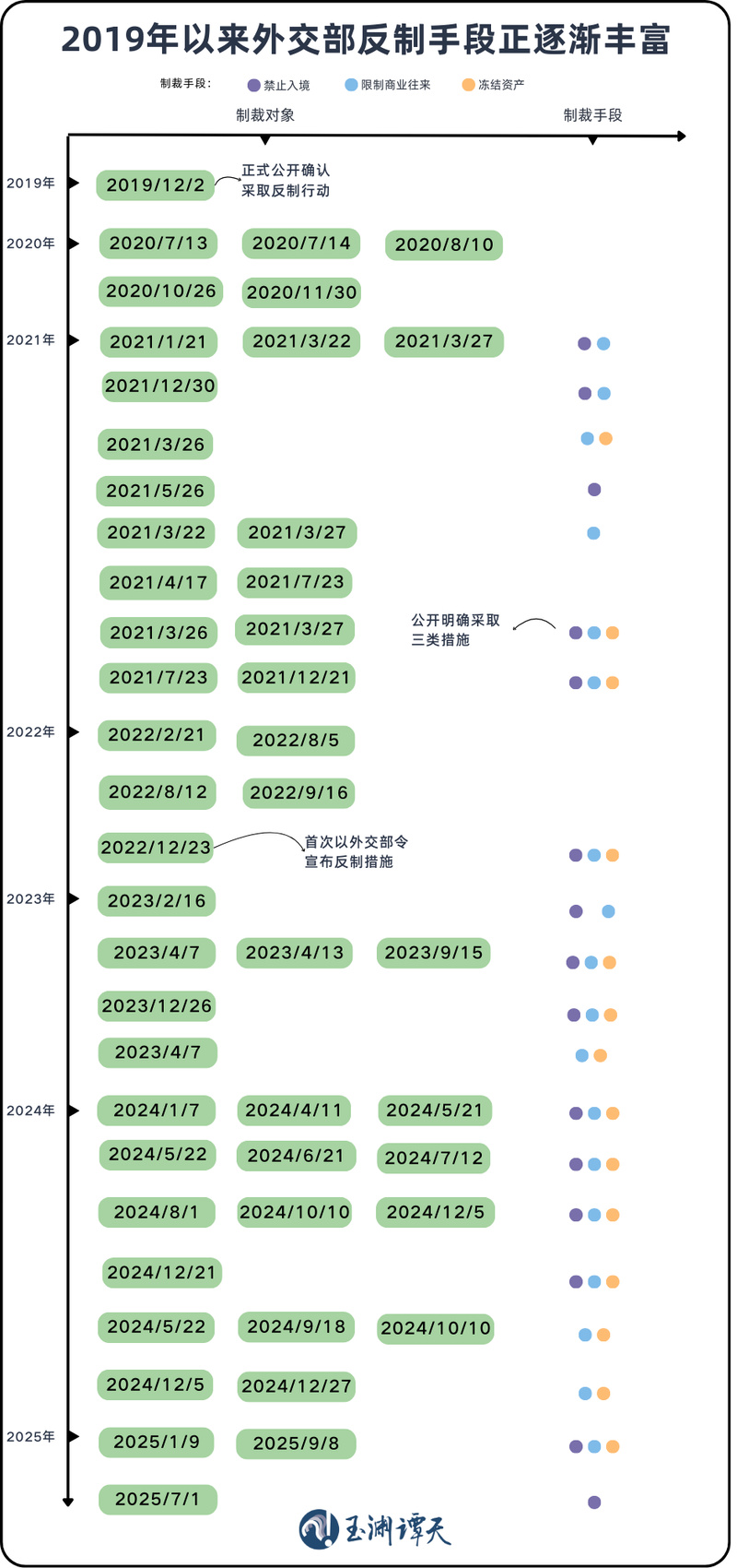 當時,外交部開始通過發言人表態宣佈制裁,正式公開確認採取反制行動。2019到2020年基本如此。