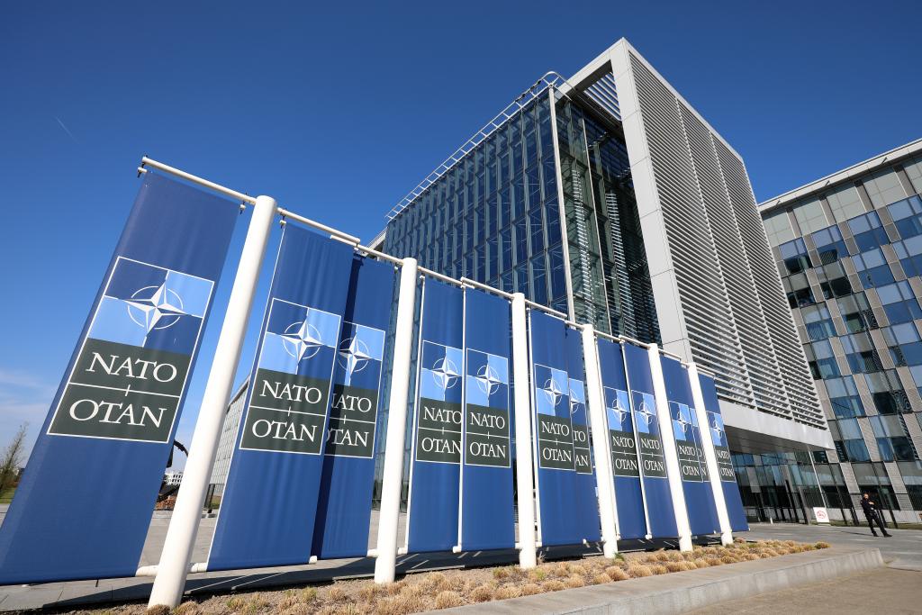 這是4月4日在比利時布魯塞爾拍攝的北約總部一角。新華社記者趙丁喆攝