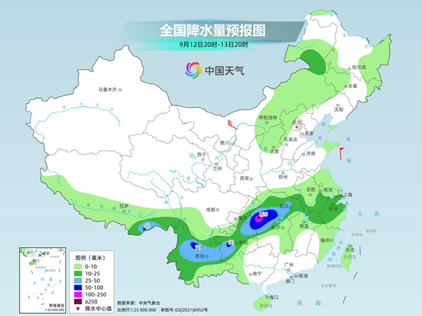 明天夜間到後天,湖北南部、湖南西北部、重慶東南部、貴州中西部、雲南西北部等地部分地區有暴雨或大暴雨。