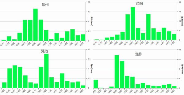 在這輪降雨過程中,整體上來看以穩定性降雨為主,但也不乏短時強降雨出現。像安徽亳州,河南許昌、太康、扶溝、鄢陵都出現了一小時雨量20毫米以上的短時強降雨。