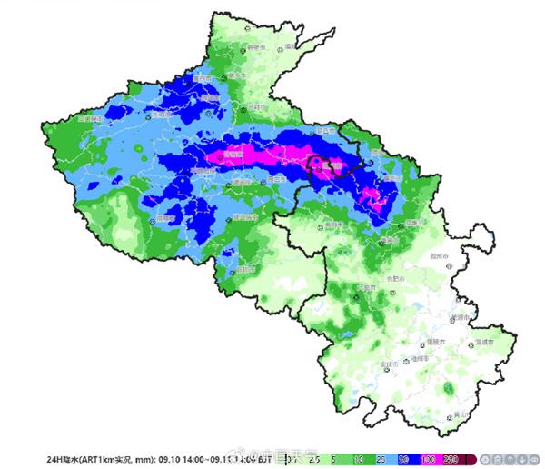 以10日14時至11日14時來統計的話,河南太康183.1毫米、鄢陵136.1毫米、鹿邑119.5毫米,皆打破當地9月日雨量紀錄。