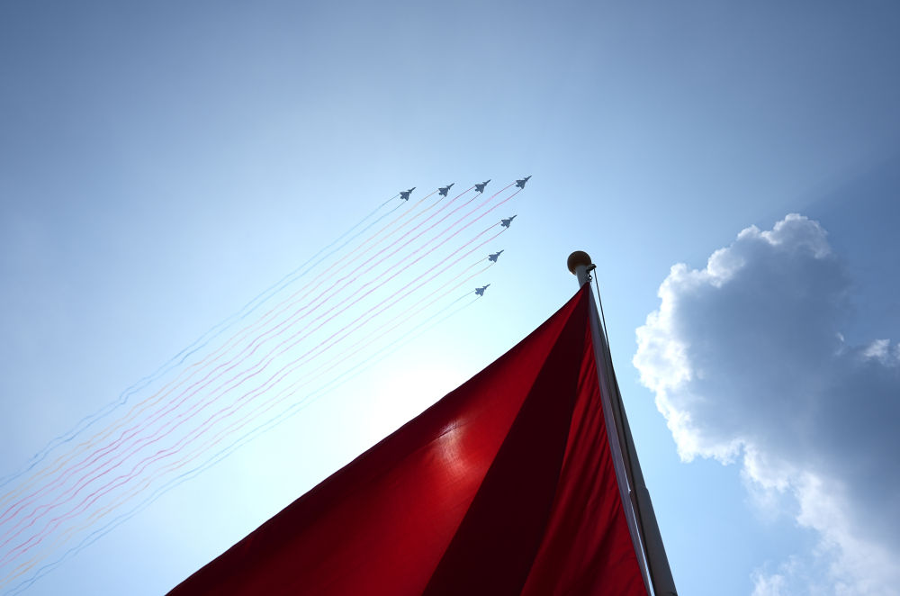 當置身歡呼的人羣,遠望湛藍天空,看着7架殲-10表演機呼嘯而過,留下14道絢麗的彩煙,耳畔再次迴響這豪邁的宣示——中華民族偉大復興勢不可擋!人類和平與發展的崇高事業必將勝利!