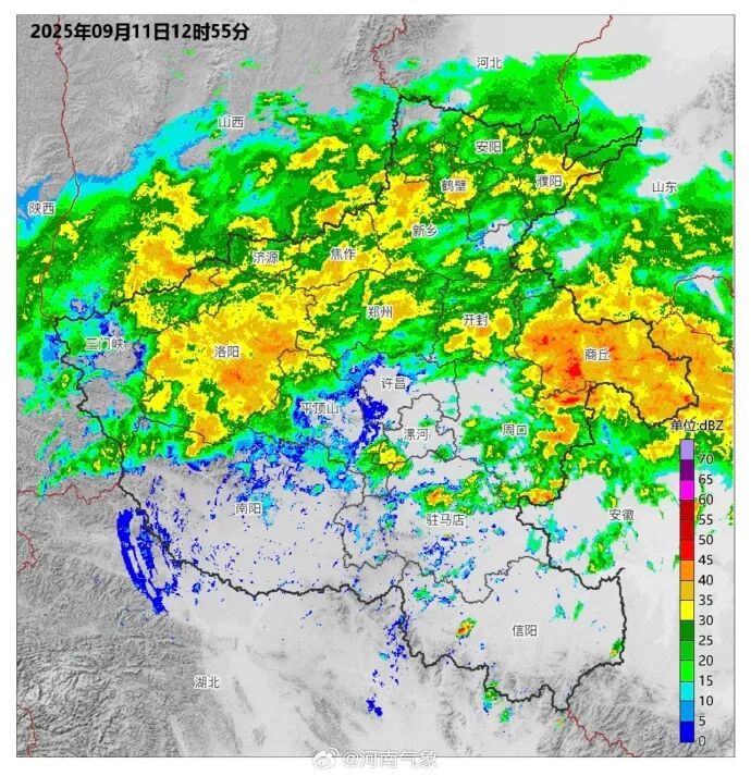 鄭州繼續發佈暴雨黃色預警,雨勢即將自西向東變大;商丘的強降水還在繼續