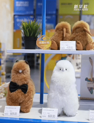 一樓是滿滿當當的進博會同款展品展示展銷,阿富汗地毯、秘魯羊駝玩偶、孟加拉國黃麻製品、巴基斯坦鹽燈等進博會上的明星展品“一字排開”;負一樓則變身直播基地,60個直播間裏主播們正在熱火朝天地帶貨;隔壁則佈局着虹橋商務區保税物流中心(B型),實現保税展示交易業務的常態化開展和進博會“展轉保”“展轉跨”等便利化措施常態化應用。