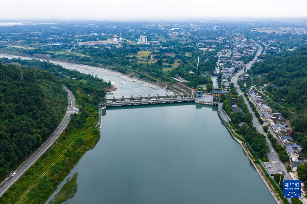 9月10日拍攝的四川彭州湔江堰(無人機照片)。新華社發(張勇 攝)