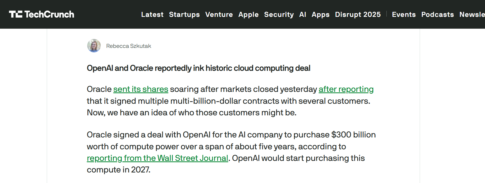 【環球網科技綜合報道】9月11日消息,據科技媒體TechCrunch報道,人工智能頭部企業OpenAI與甲骨文(Oracle)正式敲定一份價值3000億美元的算力購買訂單。該筆交易成為當前雲計算行業規模最大的合作協議之一,折射出全球AI產業對高性能算力基礎設施的強勁需求。