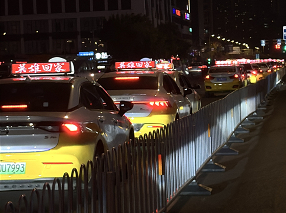 瀋陽街頭,出租車車頂屏幕顯示“英雄回家”字樣。
