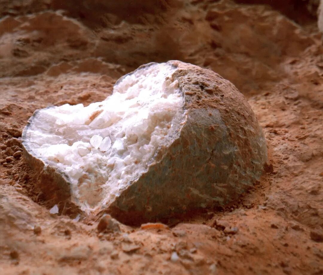 2023年底,轉機悄然出現——科研人員在青龍山恐龍蛋化石遺址1號館內,偶然發現3枚內部充填方解石晶體的恐龍蛋化石。這些化石不僅有明確的地層記錄,更因特殊的方解石礦物充填結構,為研究化石埋藏年代提供了絕佳實驗樣本。