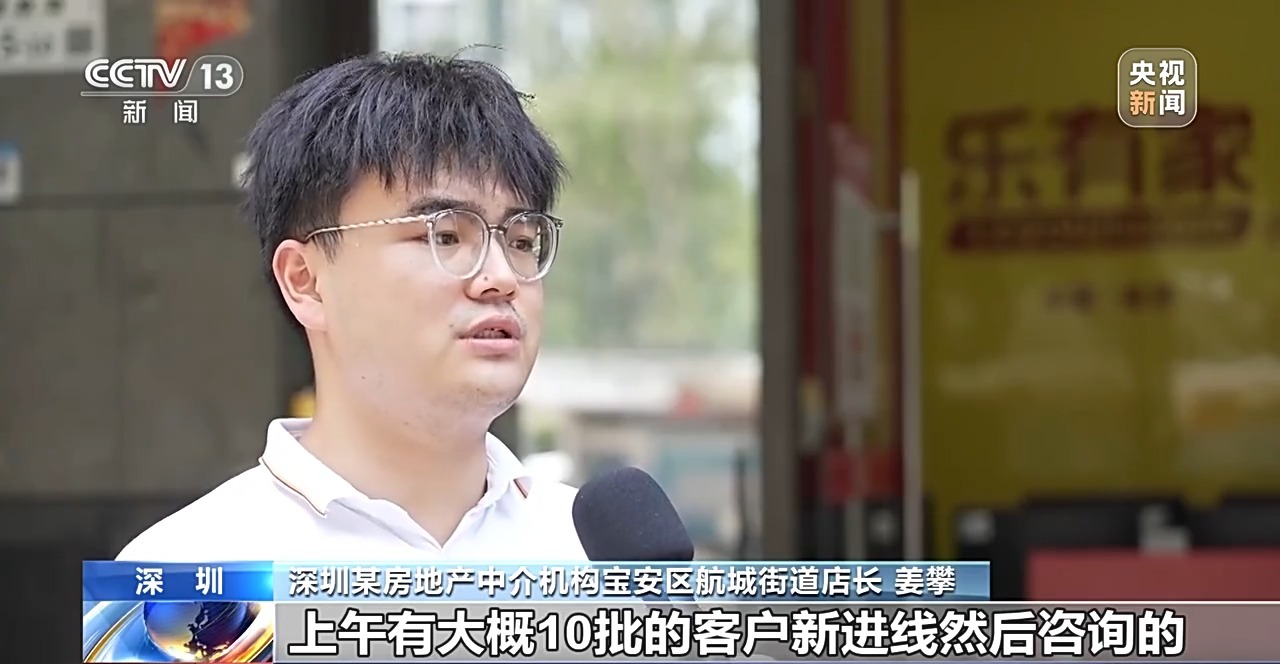 *深圳某房地產中介機構寶安區航城街道店長 姜攀:*新政出台之後,上午有大概10批的客户新進線然後諮詢的,對比之前來看,帶看量是有差不多50%左右的一個上升,對於客户來講,它可供選擇的範圍就比較多。