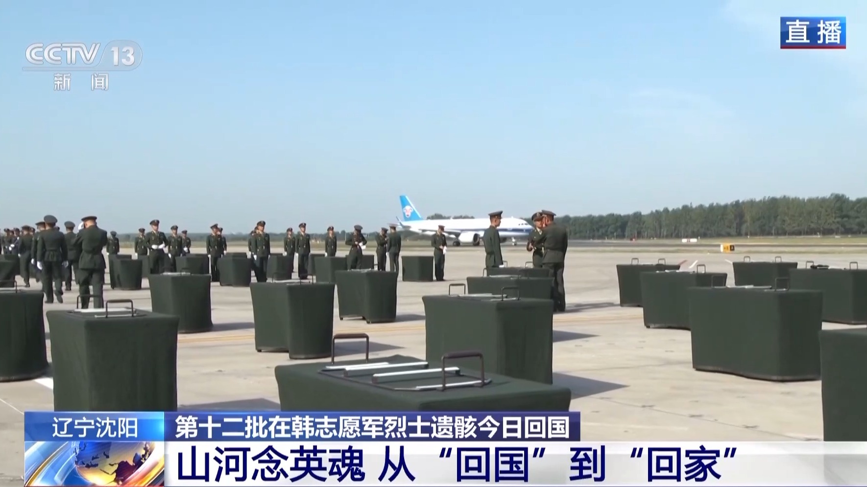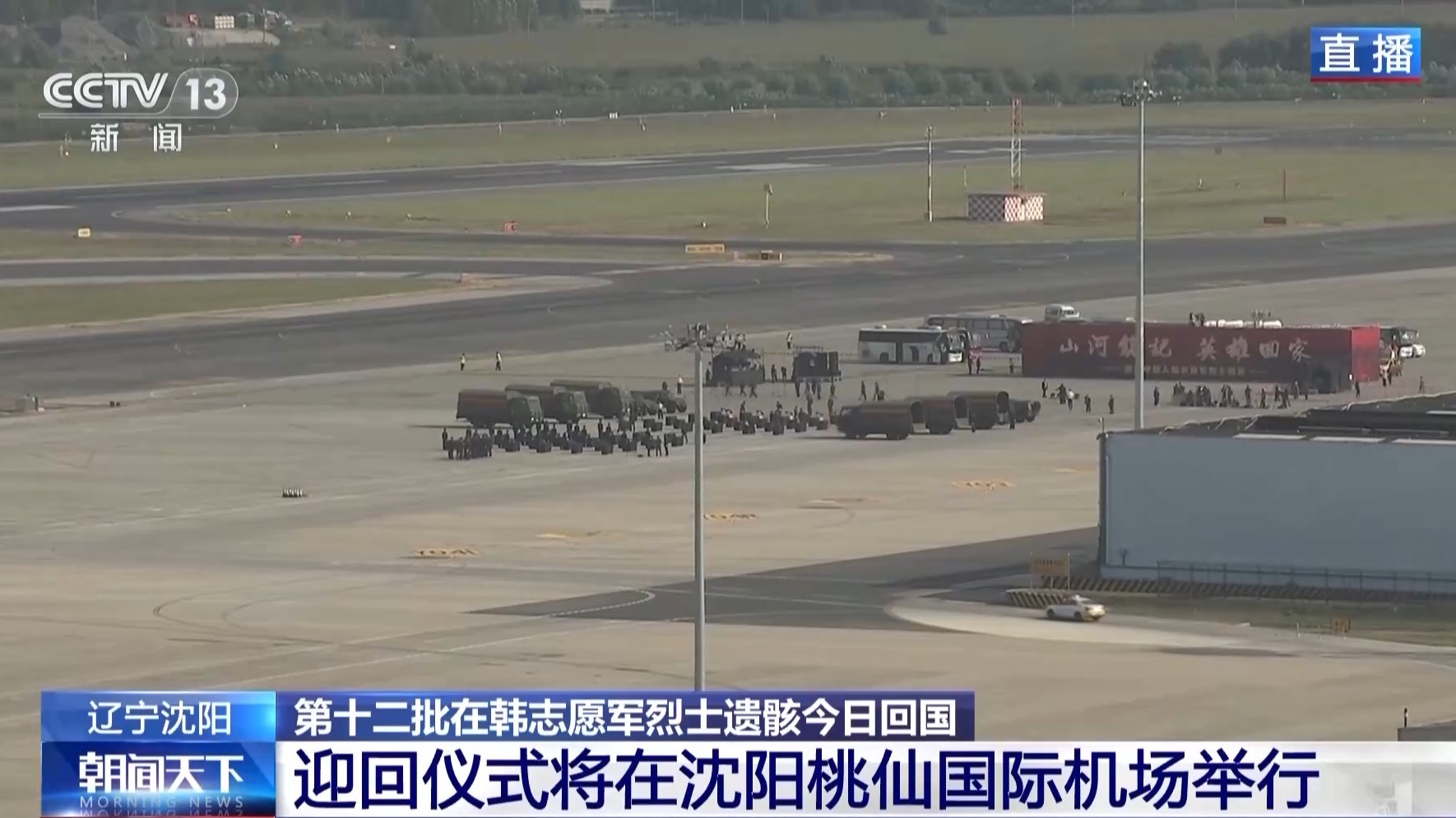 *總枱記者 楊海靈:*瀋陽桃仙國際機場的專機停機坪是舉行第十二批在韓中國志願軍烈士遺骸迎回儀式的場地。稍後,搭載30位在韓志願軍烈士遺骸及其遺物的專機將在這裏降落。