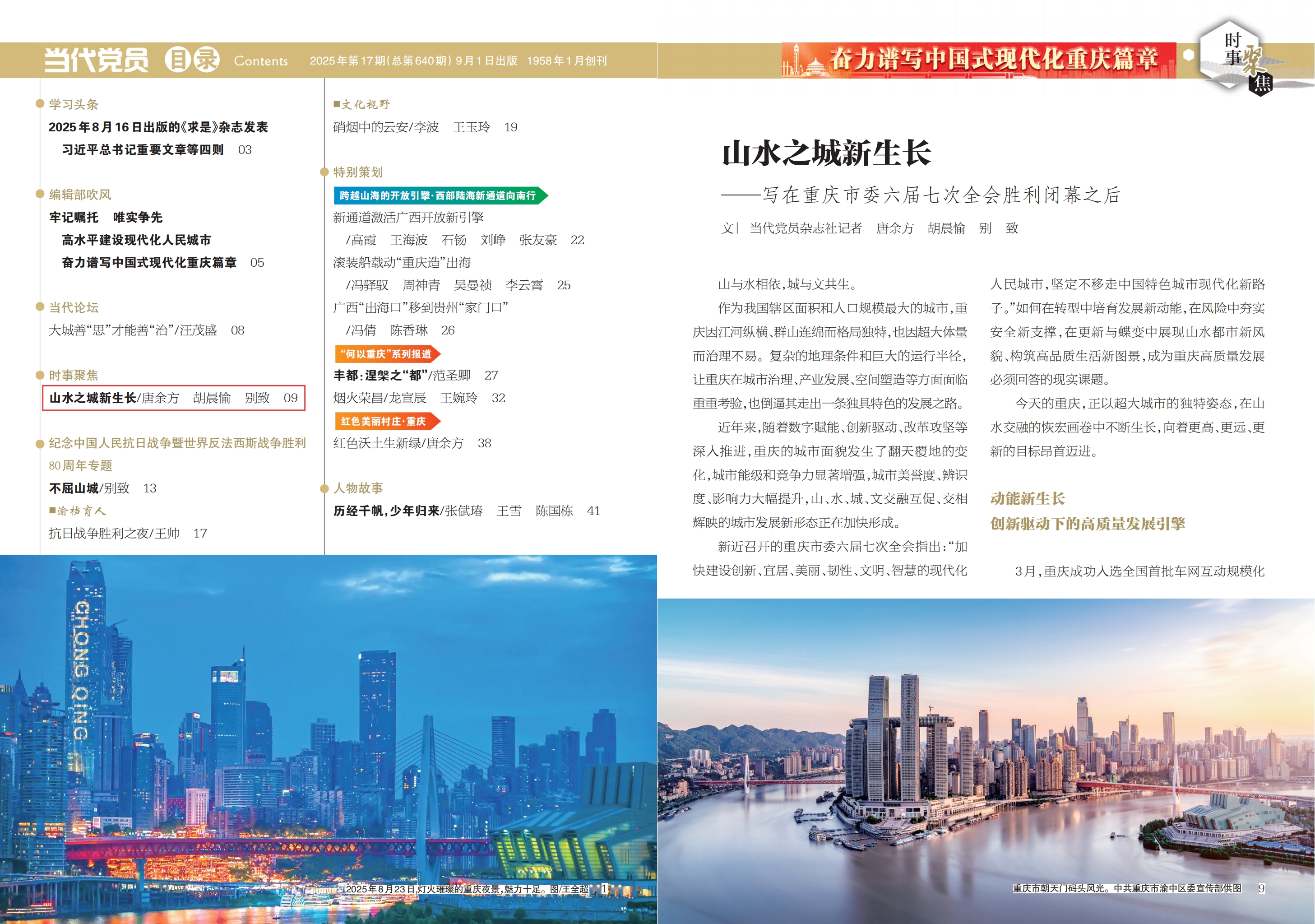 雄奇山水,新韻重慶。這裏有江峽的壯闊,也有鄉村的和美;有歷史的厚度,也有未來的朝氣。從產業創新驅動,到社區民生小事,再到兩江四岸的生態畫卷,重慶這座超大城市將繼續在建設現代化人民城市的道路上,書寫更多生長的故事。