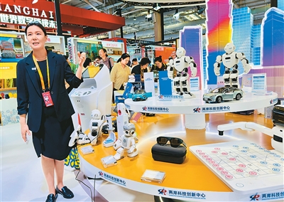 為兩岸經貿科技交流合作牽線搭橋的兩岸科技創新中心,今年首次亮相服貿會。天星醫療康復鏡、元蘿蔔下棋機器人、中科雲創MR眼鏡……一眾科技產品吸引參觀者紛紛前來體驗。該中心目前已有89家合作單位,其中大陸企業48家、台企41家,此次帶來16家企業的30多款產品。其運營負責人汪浩對記者説,台企在精密儀器、集成電路等領域深耕多年、基礎紮實,具備一定優勢,而大陸擁有廣闊的市場空間與完整的產業鏈生態,“兩岸產業各有所長,未來在服務貿易領域有巨大的融合發展空間。”