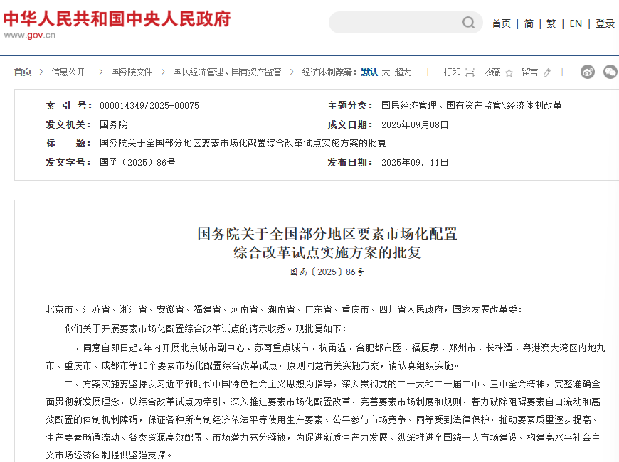國務院批覆十地啓動要素市場化改革試點,釋放經濟發展新動能