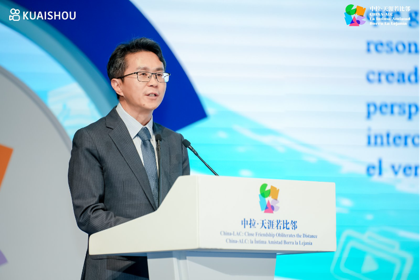 快手科技副總裁劉震出席頒獎儀式並發表演講。他表示,三年來,“中拉・天涯若比鄰”短視頻大賽在大家的共同努力下逐漸成長為中拉人文交流的一張獨特名片,讓來自不同國家的創作者有更多機會用鏡頭講述彼此的文化與故事,表達理解與欣賞。此次頒獎典禮更是將線上交流延伸至現實,以親身體驗和影像記錄展現真實的中國風貌,這正是“天涯若比鄰”的生動註腳。