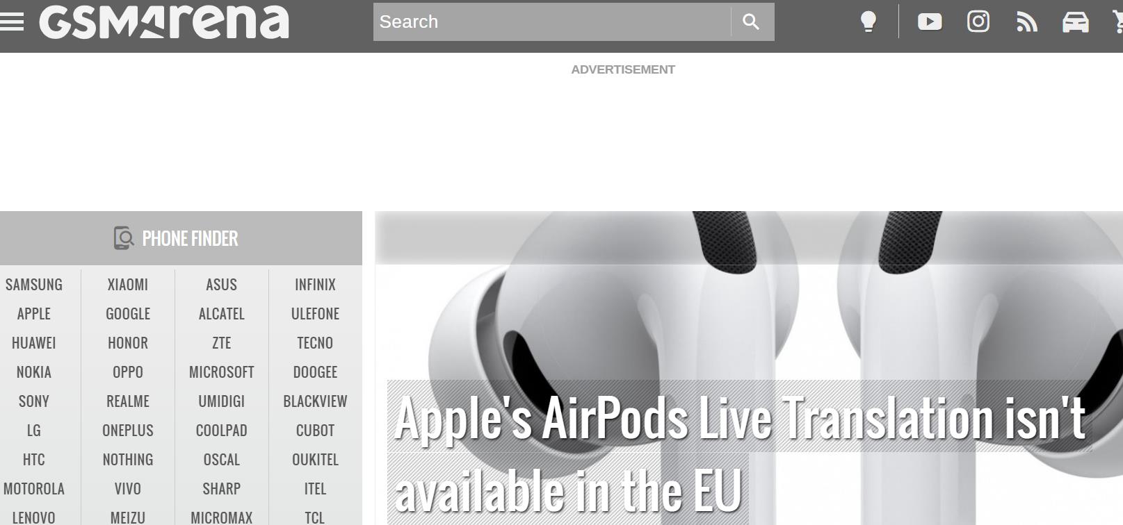 【環球網科技綜合報道】9月12日消息,據gsmarena報道,蘋果公司本週早些時候發佈了iPhone 17系列以及新款AirPods Pro 3,併為新款耳機配備了備受矚目的即時翻譯功能。然而,根據蘋果官方的功能可用性頁面,這一功能目前在歐盟地區不可用。