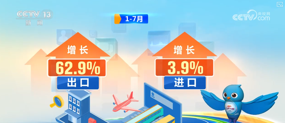 2025年,我國服務貿易穩步增長,旅行服務出口增長最快。1—7月,旅行服務進出口達12594.6億元,增長10.4%。其中,出口增長62.9%、進口增長3.9%。