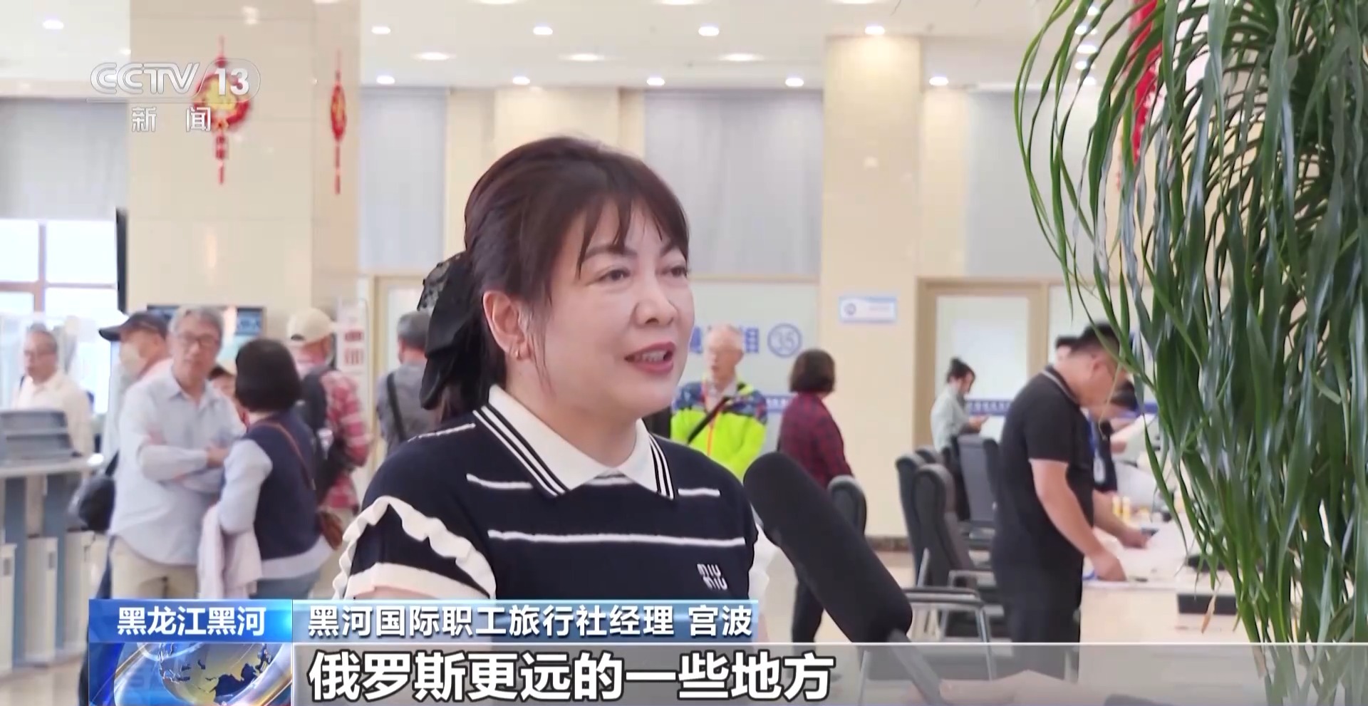 與此同時,中國遊客赴俄旅行也十分火爆。在黑河市公安局出入境接待大廳,即將出境的旅行團排起長隊,大家正在辦理臨時護照,準備開啓俄羅斯的異國旅行。