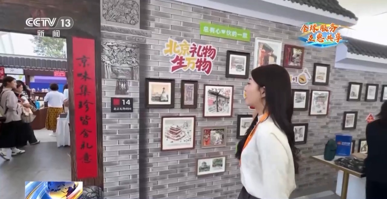 *總枱記者 邵薇:*室內體驗室外逛,這麼大的户外空間讓場景搭建在這裏“大有可為”。在為北京禮物打造的衚衕四合院,走進來能看到近30家文博單位的產品展銷。無論是軍事迷還是非遺手作愛好者,都能在這裏找到喜歡的北京禮物。